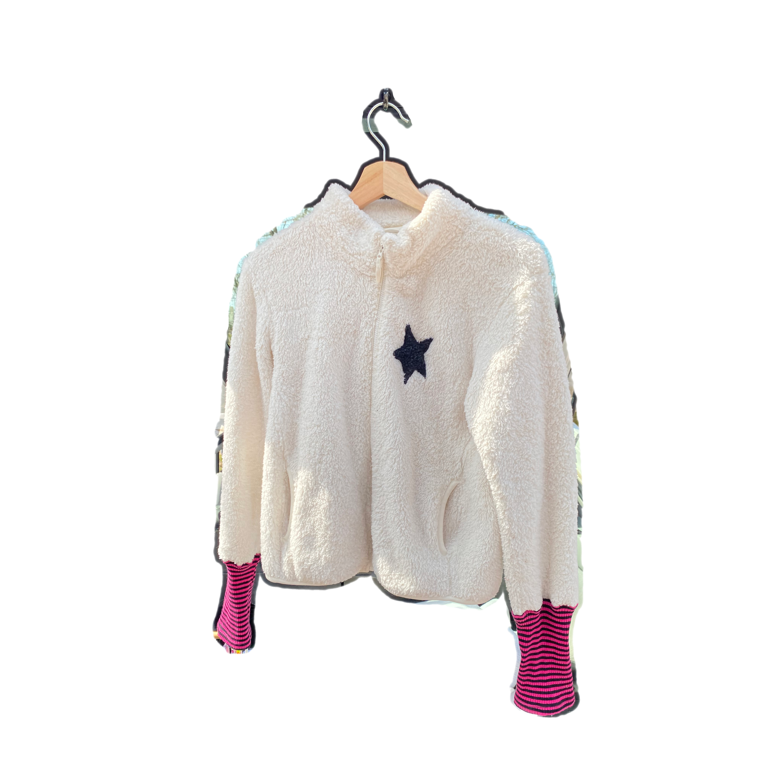 100% upcycled and recycled fabrics, fabric scraps, beads, etc.